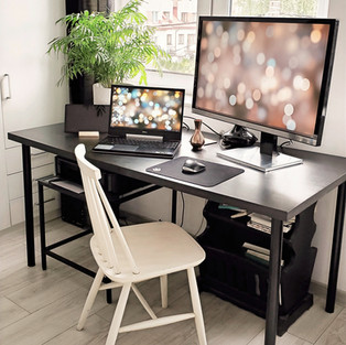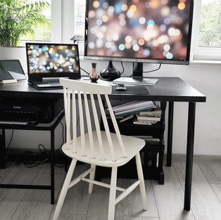 W Ikei kupiliśmy też dwa stoliki kawowe,(jeden z nich sprawdza się jako stolik pod drukarkę), biurko do pracy, duże stojące lustro oraz wieszak na ubrania do przedpokoju. Całości dopełniają 2 znalezione krzesełka patyczaki i moje stare sosnowe biurko, które po przerobieniu pełni rolę stołu w kuchni.